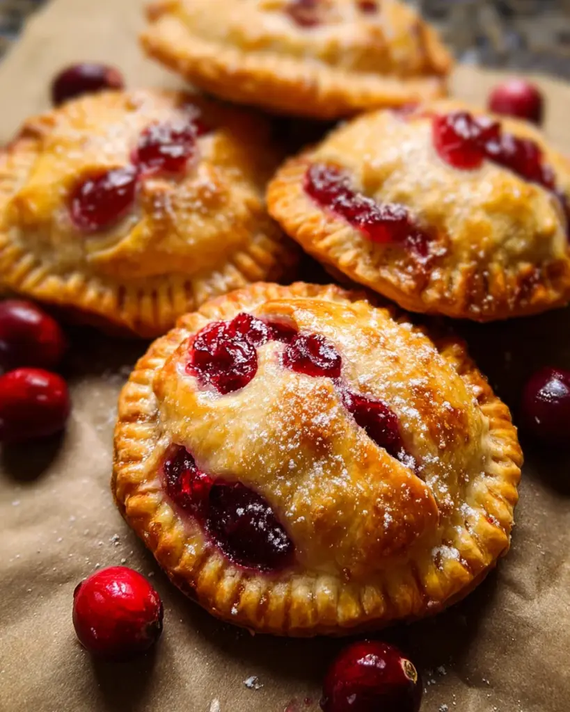 Delicious and flaky hand pies filled with tart cranberries and a hint of orange, perfect for a delightful treat!