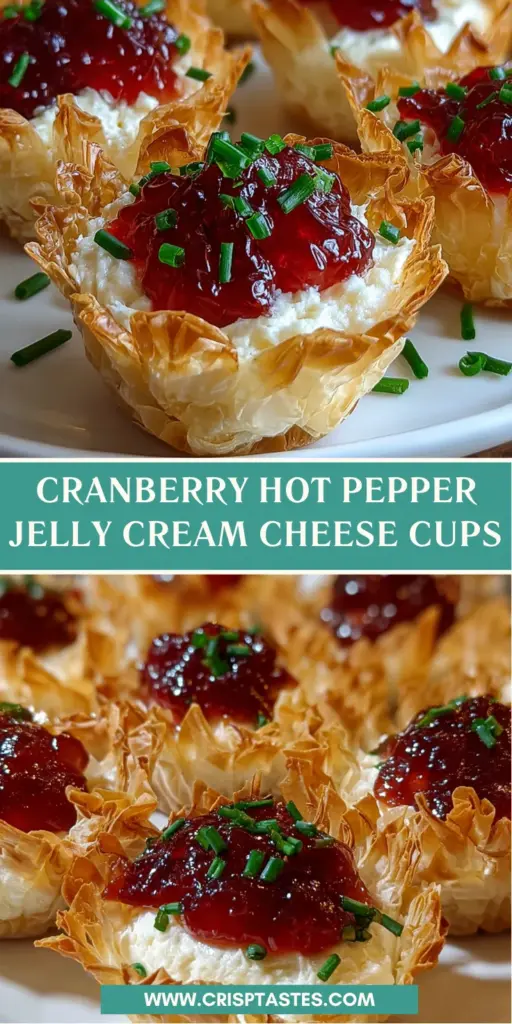 Delicious and visually appealing cranberry hot pepper jelly cream cheese cups perfect for gatherings.