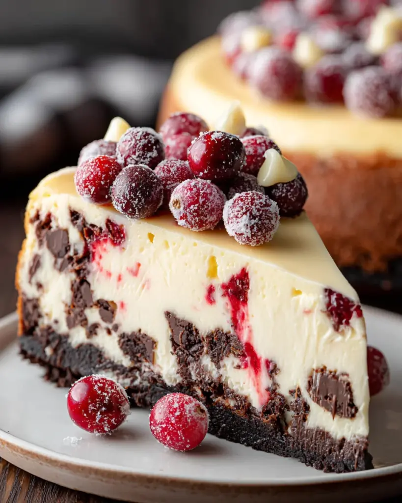A deliciously rich and creamy Cranberry White Chocolate Cheesecake, perfect for indulging any day of the year.