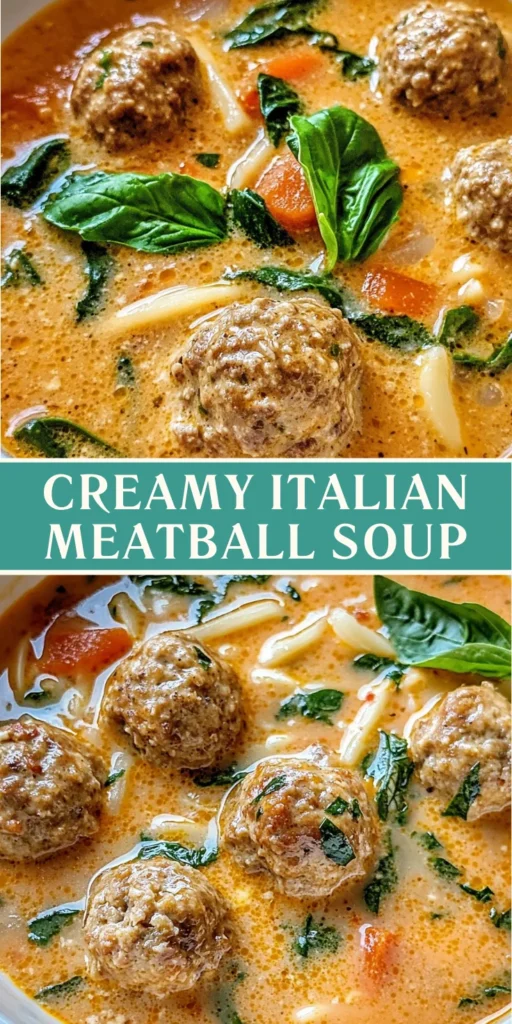 There’s something truly magical about a bowl of Creamy Italian Meatball Soup. It’s more than just a meal; it’s a moment of comfort and connection. As you gather around the table with your loved ones, the warmth of this soup brings smiles and laughter. I cherish the memories created over shared meals, and this recipe is sure to become a family favorite. Whether it’s a chilly evening or a busy weeknight, this soup is your go-to for a cozy, satisfying experience. So grab your ingredients and let the cooking adventure begin!