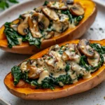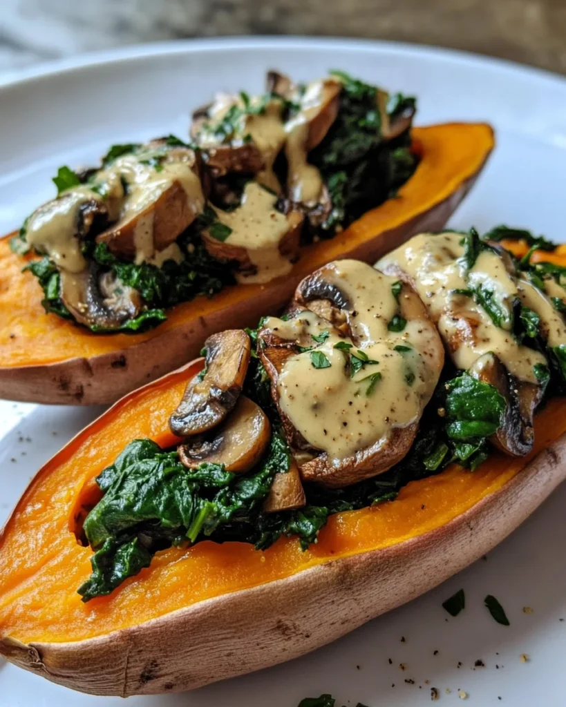 Creamy Mushroom and Spinach Stuffed Sweet Potatoes