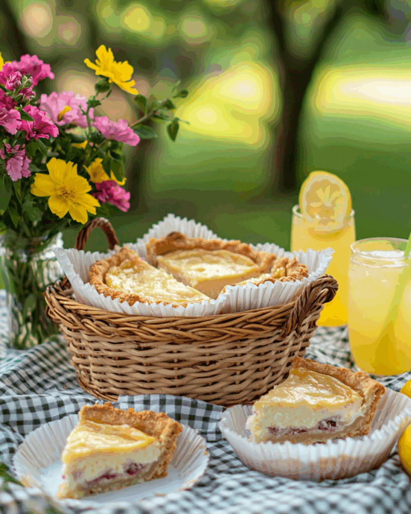 Slice and pack the pie into individual tart tins or cupcake liners for easy transport. Serve with cold sparkling lemonade or elderflower tonic.