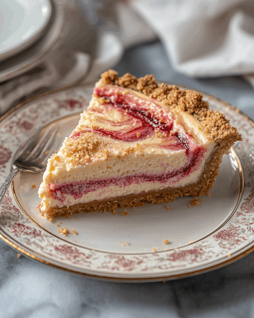 - Layered Perfection: This pie isn’t just cheesecake — it has a rich, jammy rhubarb layer that adds brightness and flavor contrast.