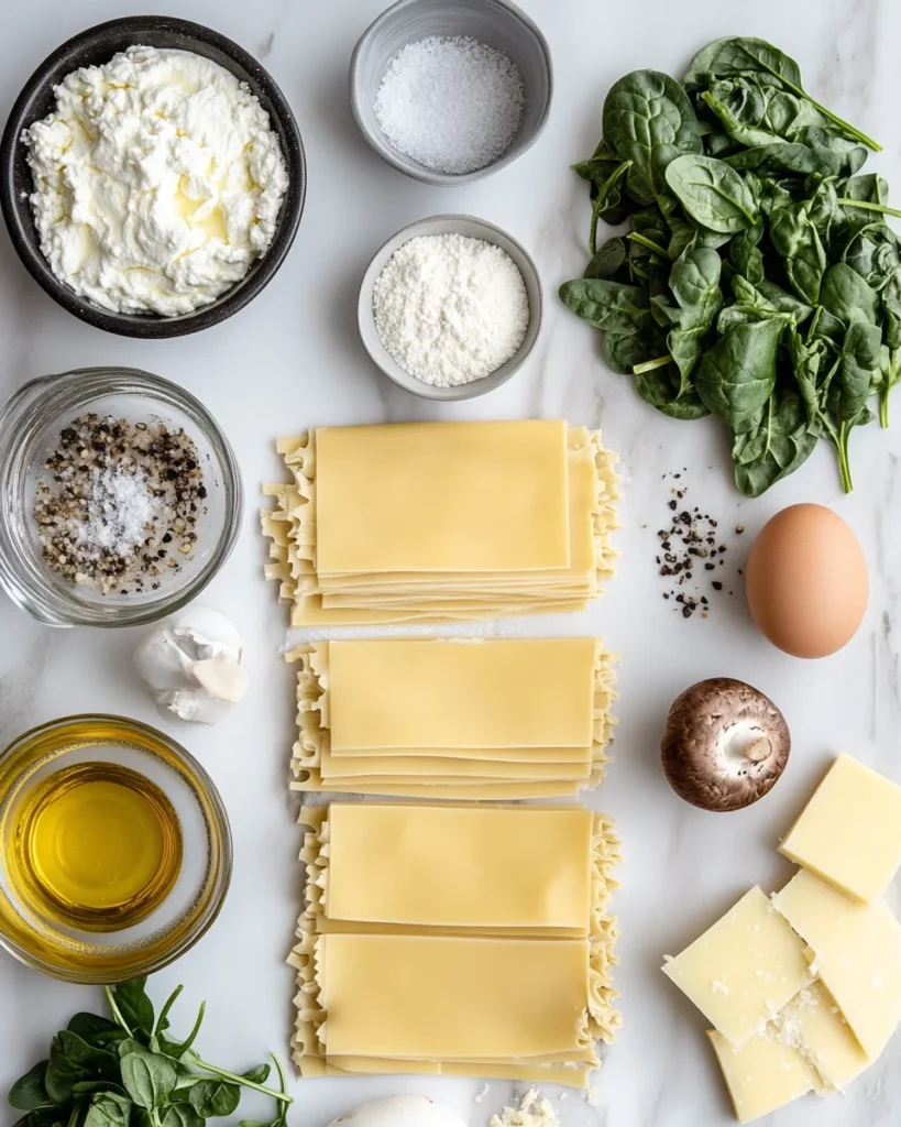 Ingredients for Creamy Spinach and Mushroom Lasagna
