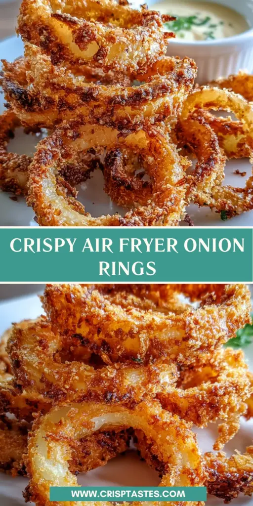 Making Crispy Air Fryer Onion Rings isn’t just about the delicious outcome; it’s an experience that offers joy, laughter, and a sprinkle of nostalgia. Whether you’re sharing them with family on movie night or enjoying them on a busy afternoon, these crunchy delights bring a delightful crunch to the table. With the garlic aioli dip at arm’s reach, each bite becomes a moment to savor. So, gather those ingredients and embark on this culinary journey. Trust me, every crispy ring you create will bring cheers and smiles—what’s better than that?