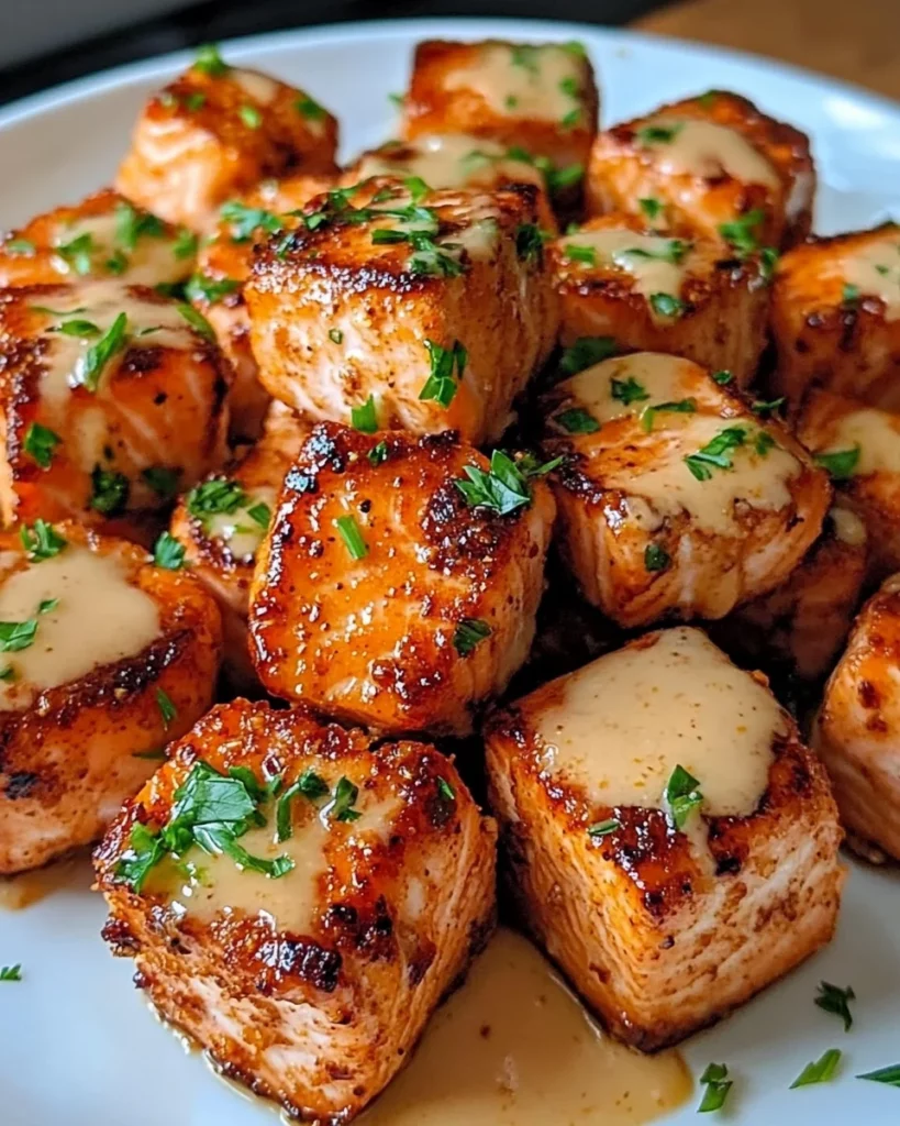 - Let the salmon bites rest for a minute before serving to enhance the flavor.