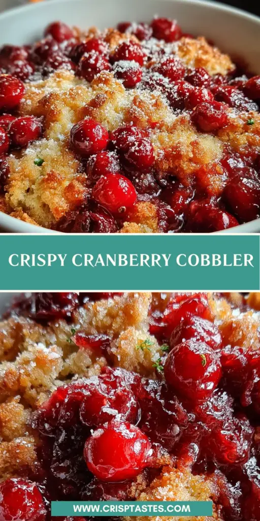 A deliciously easy recipe for a crispy cranberry cobbler that combines tangy cranberries with a sweet and crunchy topping.