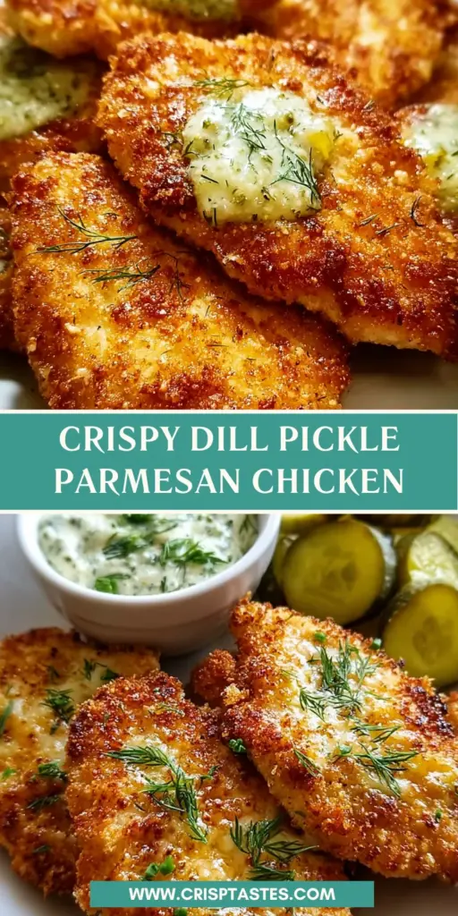 Crispy Dill Pickle Parmesan Chicken is a flavorful dish that combines marinated chicken breast with a crunchy breadcrumb and Parmesan coating, making it a delightful meal option.