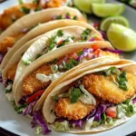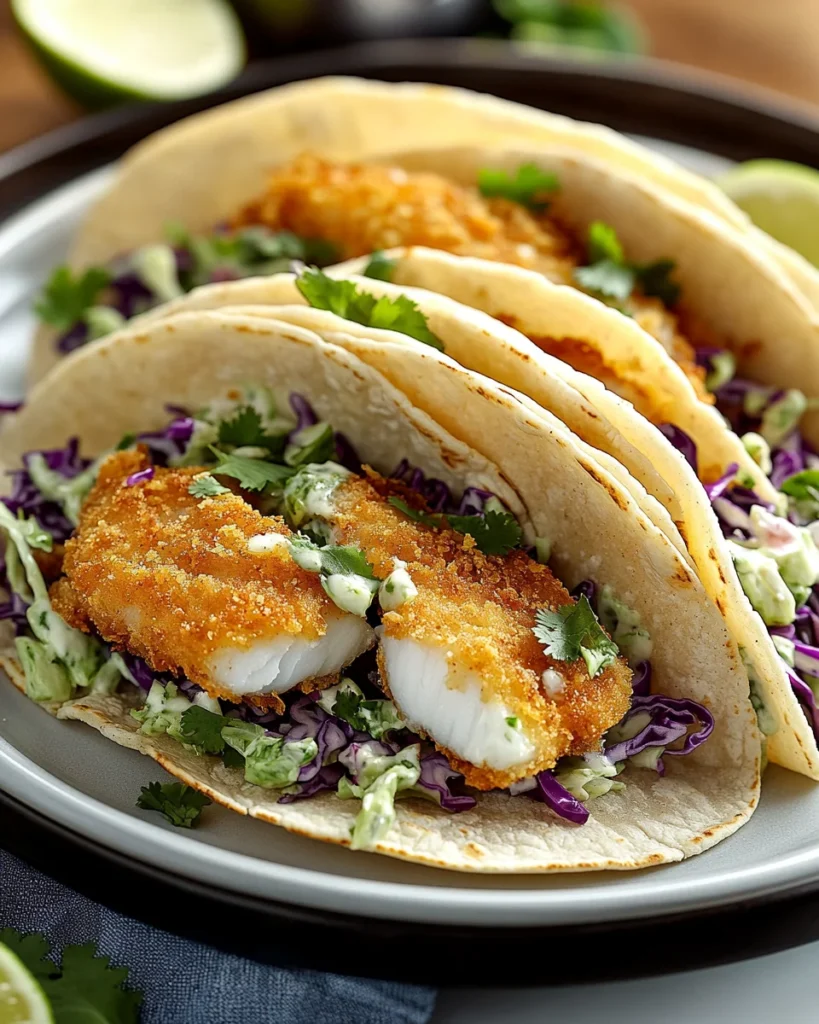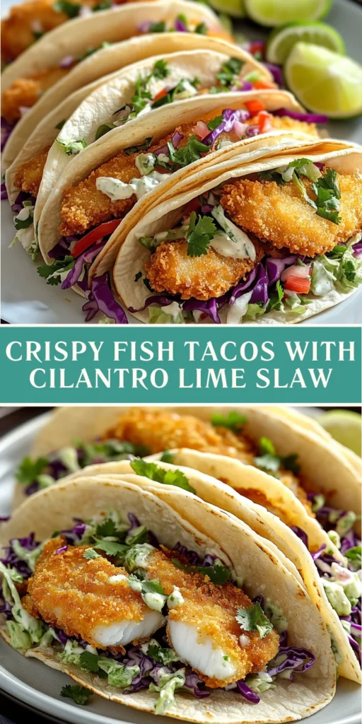 Crispy Fish Tacos with Cilantro Lime Slaw are a delicious and refreshing dish that combines crispy fried fish with a zesty slaw, perfect for any taco night.