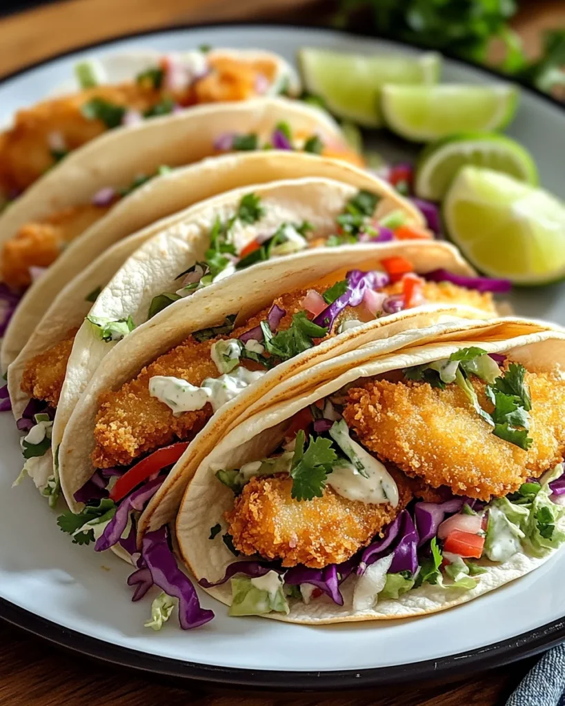 Crispy Fish Tacos with Cilantro Lime Slaw are a delicious and refreshing dish that combines crispy fried fish with a zesty slaw, perfect for any taco night.