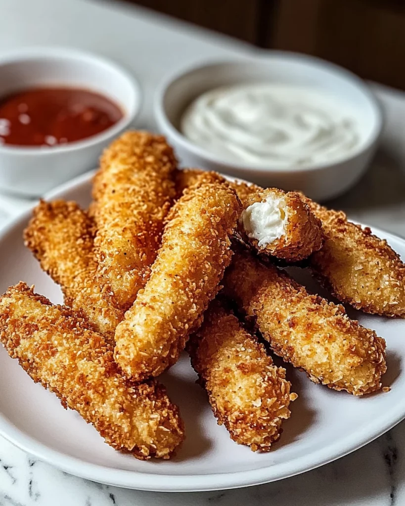 Crispy Mozzarella Sticks with Marinara and Creamy Dip Delight Your Taste Buds!