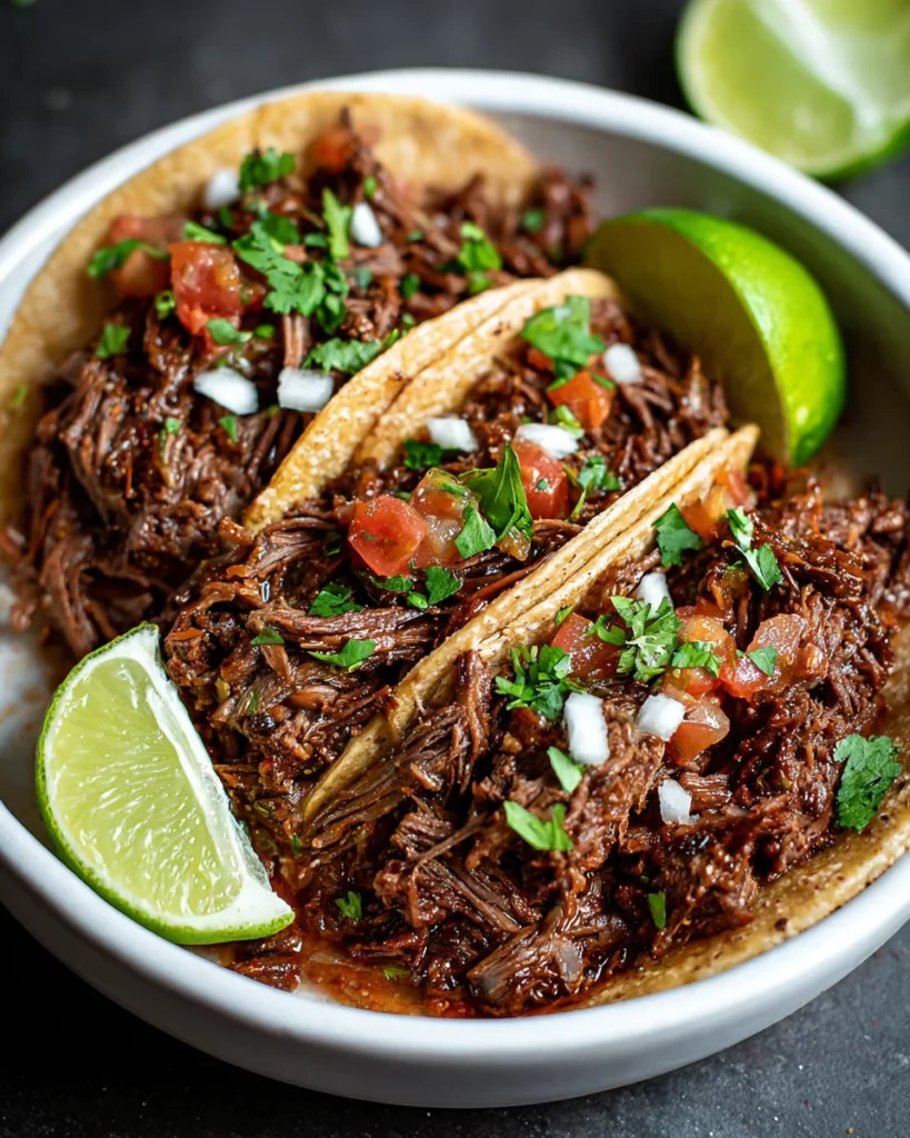 This recipe is all about simplicity and flavor, making it a perfect weeknight dinner choice. You’ll love how it requires minimal hands-on time while allowing your crockpot to do the heavy lifting. Plus, the taste? Absolutely divine! The tender beef mingles with zesty spices, creating a fiesta in your mouth. And let’s not forget about the joy of customizing your tacos with toppings that suit your family’s preferences. Dinner made easy and delicious!