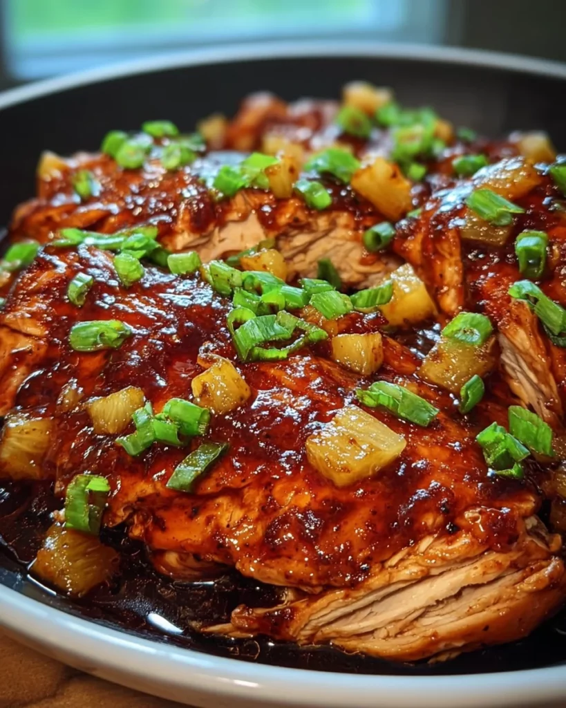 A delicious and easy recipe for Crockpot Pineapple BBQ Chicken that offers a flavorful feast with tender chicken and a sweet tangy sauce.