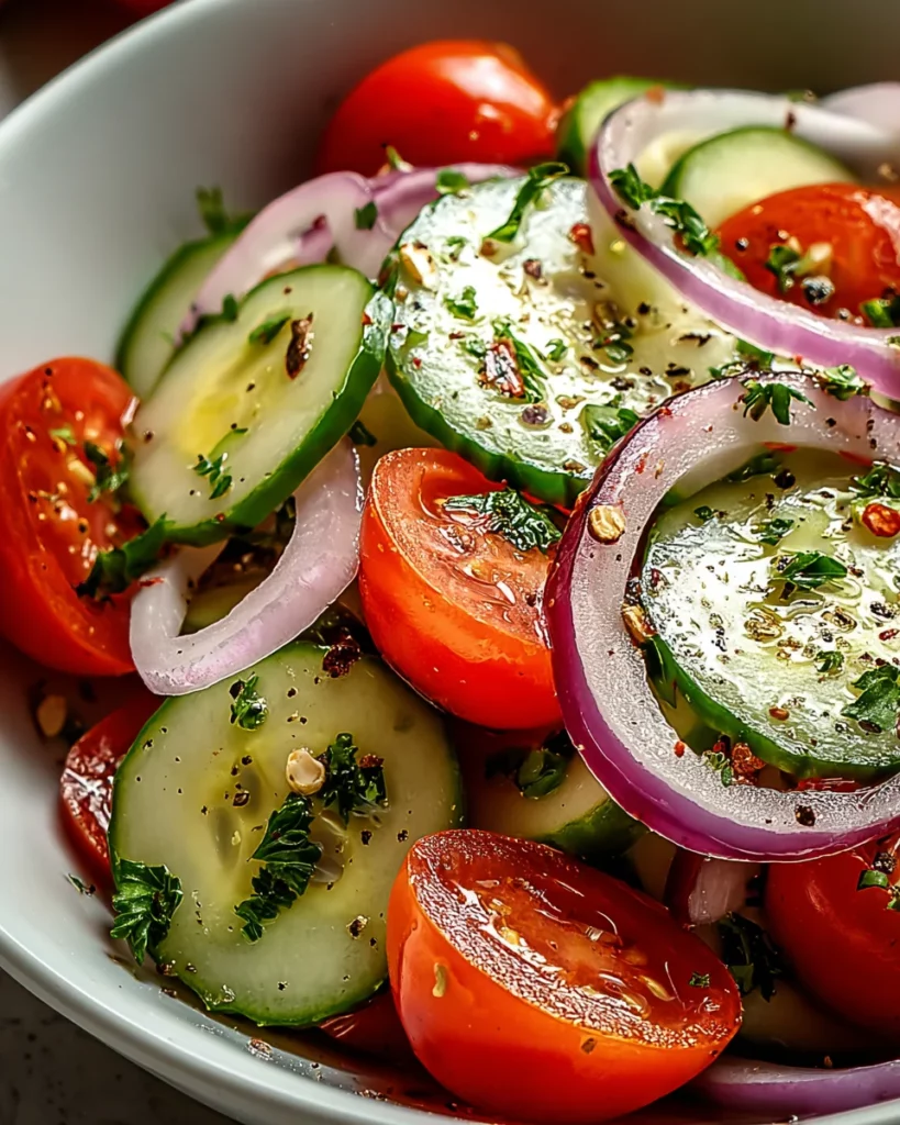 Ah, the classic Cucumber, Onion, and Tomato Salad! It’s like a breath of fresh air on a busy summer day. I often find myself whipping up this vibrant salad when time is tight, yet I still crave something wholesome and refreshing. Whether you’re looking for a quick solution for a hectic weeknight dinner or a dish that will impress your loved ones at a barbecue, this salad ticks all the boxes. With its bright flavors and crisp textures, it adds a pop of color and nutrition to any meal!