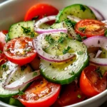 This Cucumber, Onion, and Tomato Salad is not just easy to make; it’s a joy to eat! The vibrant colors and refreshing crunch captivate the senses while requiring minimal time in the kitchen. In just 10 minutes, you can create something that’s not only delicious but also healthy and satisfying. Plus, it pairs beautifully with almost any dish, making it the ultimate crowd-pleaser for busy moms and professionals alike.