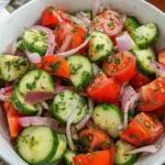 As summer rolls in and the days get warmer, I find myself craving something light and refreshing. That’s where my go-to dish the Cucumber Tomato Salad—comes in! It’s a quick solution for busy moms like us who need to whip up something delicious in no time. This salad is vibrant and packed with flavor, making it a delight to serve at family gatherings or picnics. Plus, it’s the kind of dish that impresses without demanding hours in the kitchen. Trust me, your taste buds will thank you for this burst of freshness!