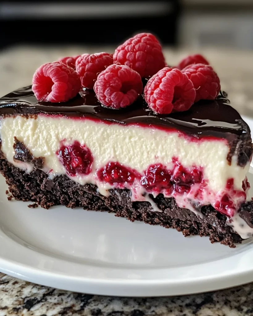 A rich and decadent dark chocolate raspberry cheesecake that combines the flavors of chocolate and tart raspberries, perfect for impressing guests.