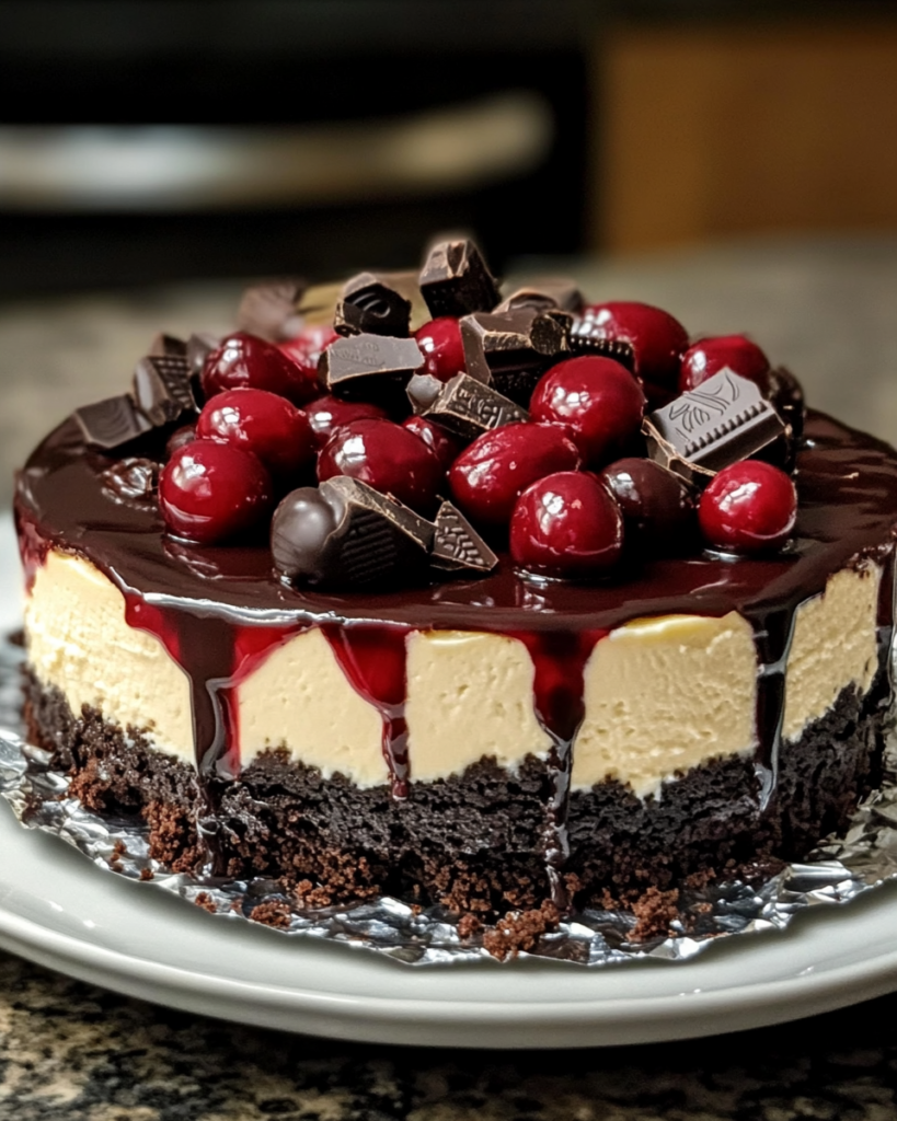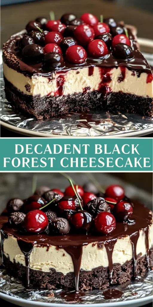 Decadent Black Forest Cheesecake. This delightful dessert combines the rich, creamy texture of cheesecake with the luscious flavors of chocolate and cherries. It’s like a sweet hug on a plate, perfect for any occasion!