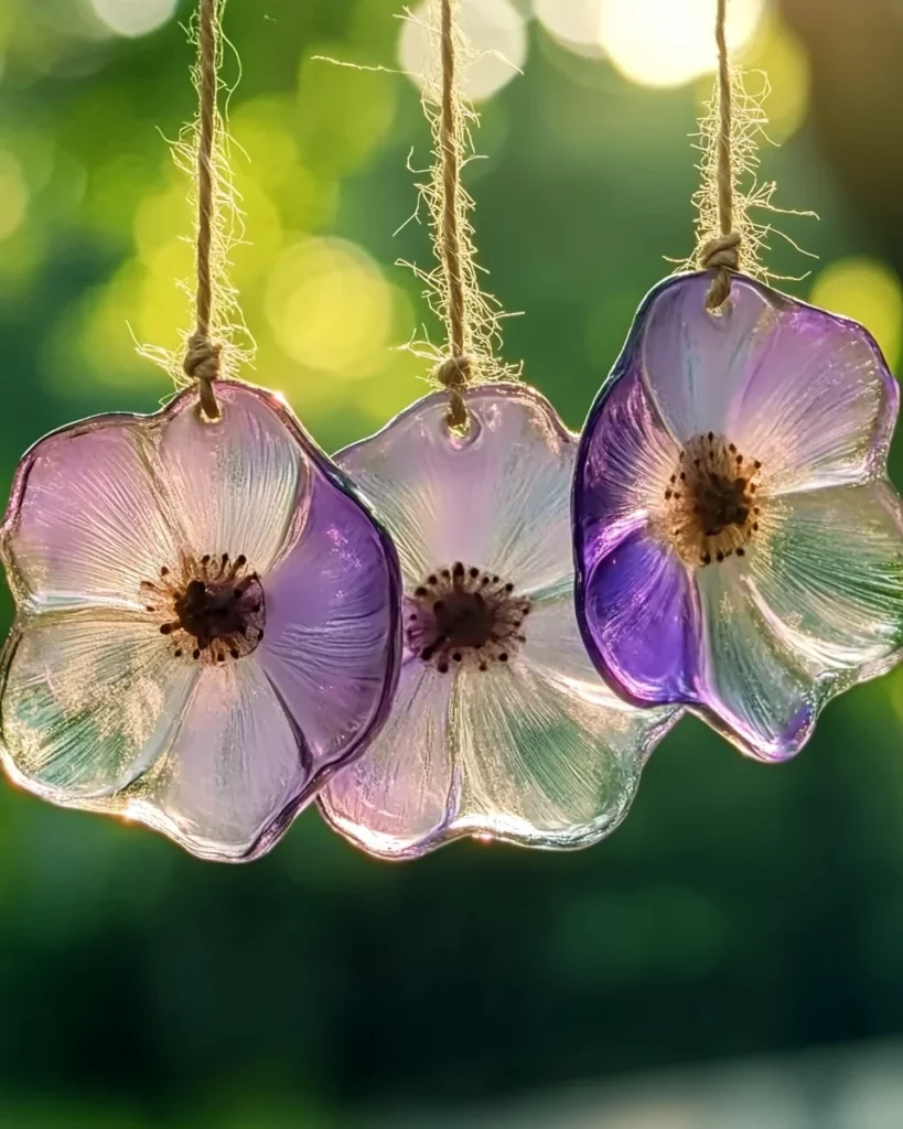 - Hang and enjoy: Once firm and dry, pop out your suncatchers and hang them in a sunny window for a touch of natural beauty.