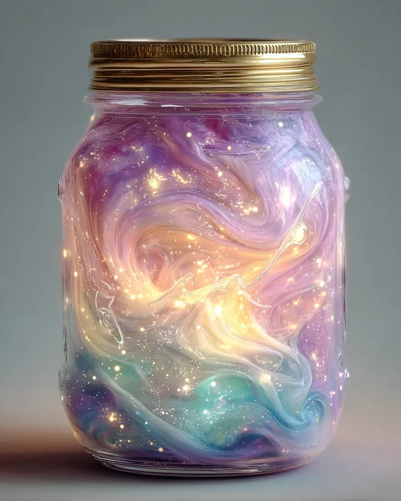 - Optional: Outer sparkle: Use spray adhesive or Mod Podge to lightly coat the outside of the jar and roll in glitter for a stardust shimmer.
