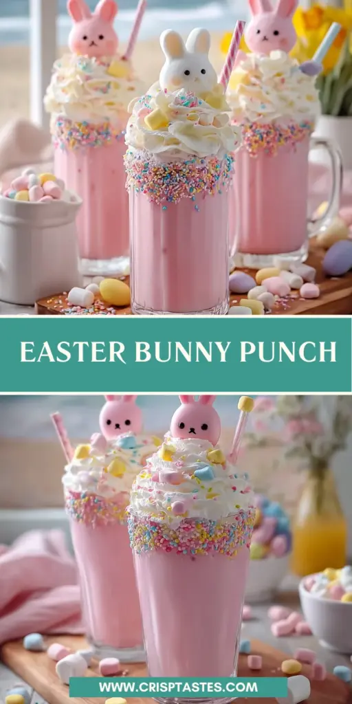 What makes Easter Bunny Punch so special is its light, creamy texture and playful presentation. With whipped cream, pastel sprinkles, and bunny-shaped marshmallow treats on top, it becomes more than just a drink—it becomes part of the Easter decoration.