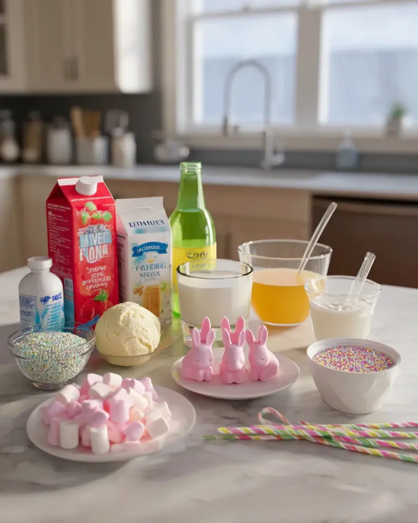 To create the perfect Easter Bunny Punch, you’ll need a mix of creamy ingredients and a fizzy element.