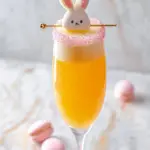 A fun and festive cocktail to celebrate Easter, combining fresh orange juice and Champagne garnished with colorful Gummy Peeps.