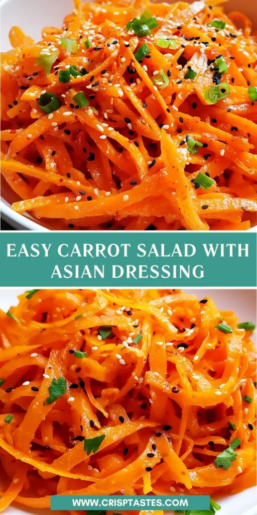 Creating the Easy Carrot Salad with Asian Dressing has been a delightful journey, and I hope it brings you as much joy as it does for me! This colorful dish is not just quick to prepare but also makes every meal feel special. Every crunch of the carrots and burst of flavor from the dressing makes me feel truly alive in the kitchen. Whether it’s a busy weeknight or a sunny weekend gathering, this salad shines bright as the perfect companion. So grab your peeler, and let’s celebrate the simple pleasures of cooking together!