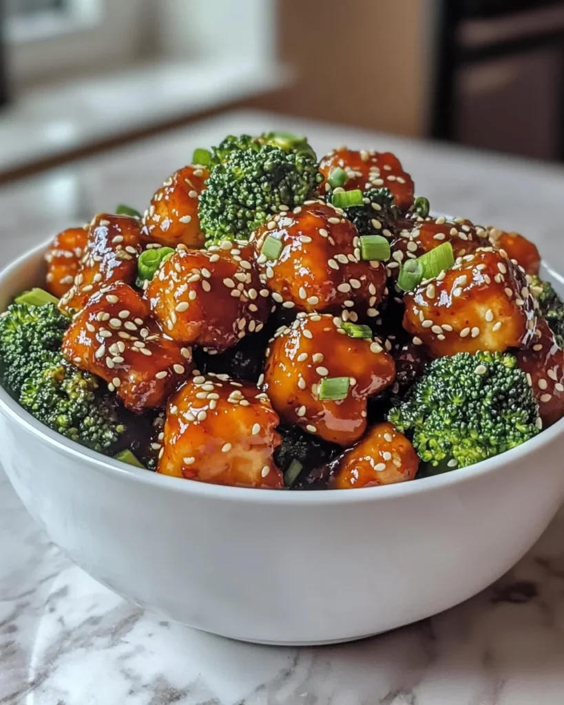 Now, for the grand finale! Transfer your beautifully coated broccoli to a serving dish. Sprinkle it generously with sesame seeds for that extra touch of crunch and elegance. These little seeds add not just flavor, but a pop of visual appeal, making it a feast for the eyes as well!