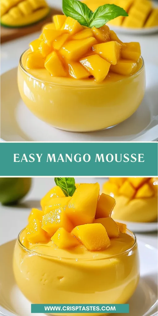 Creating this Easy Mango Mousse is more than just making a dessert; it’s about sharing joy and love with those you cherish. The vibrant colors and luscious flavors bring a smile to everyone’s face, making it a delightful addition to any occasion. I love how simple it is to prepare, yet it feels like a special treat. Whether it’s a family dinner or a gathering with friends, this mousse is sure to impress. So, roll up your sleeves, grab those ripe mangoes, and let the magic happen in your kitchen. You won’t regret it!