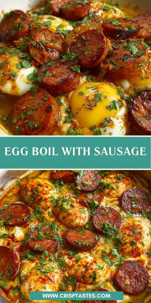 Making this Egg Boil with Sausage is more than just cooking; it’s a celebration of flavor and togetherness. It’s a delightful way to bond over a hearty meal, even on the most chaotic days. The combination of tender eggs and savory sausage wrapped in that irresistible Cajun butter sauce lifts spirits and satisfies cravings. As you gather around the table, you’ll create memories with your loved ones that go beyond the plate. So, grab your skillet and dive into this vibrant dish that promises joy with every savory bite!