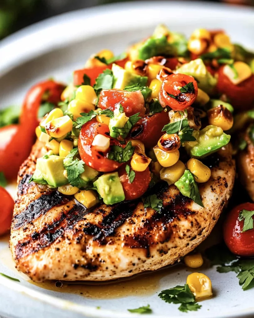 Slice the rested chicken and serve it alongside the avocado salsa. It’s a vibrant plate full of color and flavor that’s sure to impress everyone at the table. Enjoy your culinary creation!