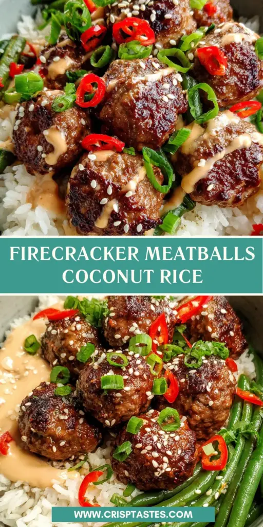 Cooking should always be a joyful experience, and my Firecracker Meatballs Coconut Rice brings smiles to the dinner table. It’s more than just a meal; it’s a culinary adventure full of vibrant flavors and comforting textures. The delightful combination of spicy meatballs and creamy coconut rice is sure to please even the pickiest of eaters. Plus, it’s quick to prepare, making it a perfect choice for busy evenings. I hope this dish brings warmth to your family’s table and sparks creativity in your kitchen. Dive in and savor the joy of cooking something delicious!