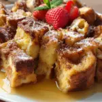 A delicious French toast bake casserole that’s perfect for breakfast or brunch, combining bread, eggs, milk, and a sweet topping.