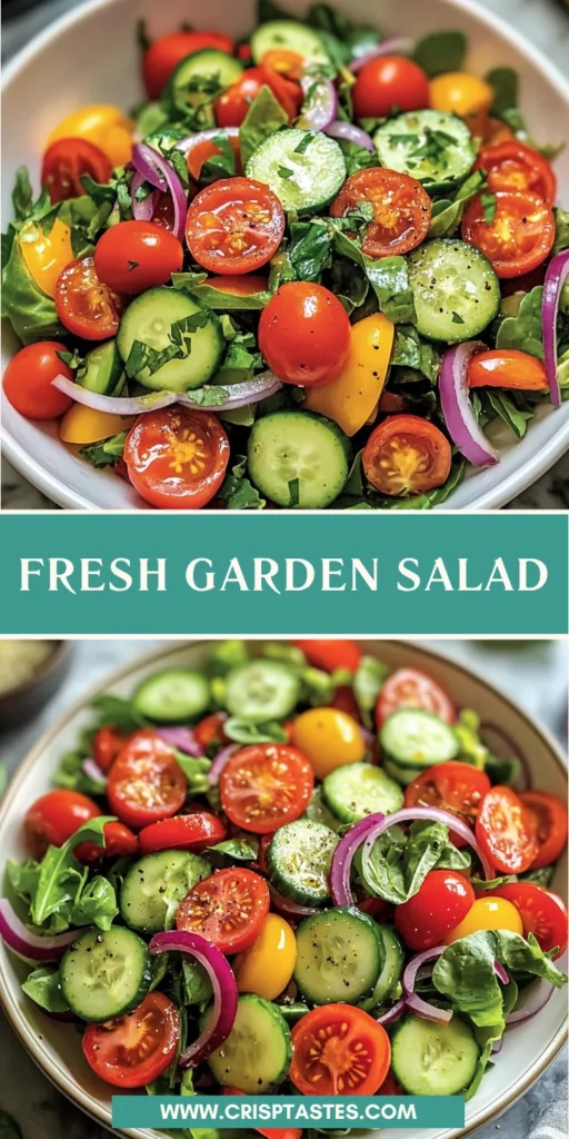 Creating this Fresh Garden Salad Recipe truly brings joy to my kitchen. The simplicity of tossing together fresh ingredients is both therapeutic and rewarding. I love seeing my family’s faces light up with each crunchy bite, reminding me how nourishing and vibrant food can be. This salad isn’t just a side dish; it’s a canvas for creativity and flavor. Whether you’re enjoying it on a sunny day or making it a staple during busy nights, this recipe transforms meals into memorable moments. So, gather your ingredients and let the salad-making magic begin!