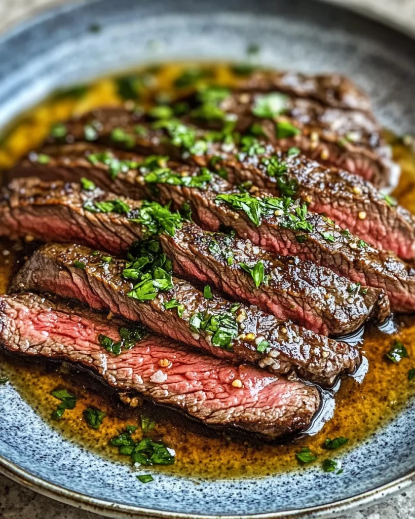 A delicious recipe for juicy skirt steak infused with garlic butter, perfect for a flavorful meal.