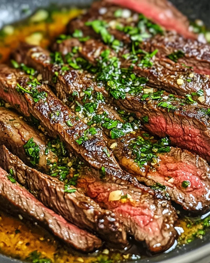 A delicious recipe for juicy skirt steak infused with garlic butter, perfect for a flavorful meal.