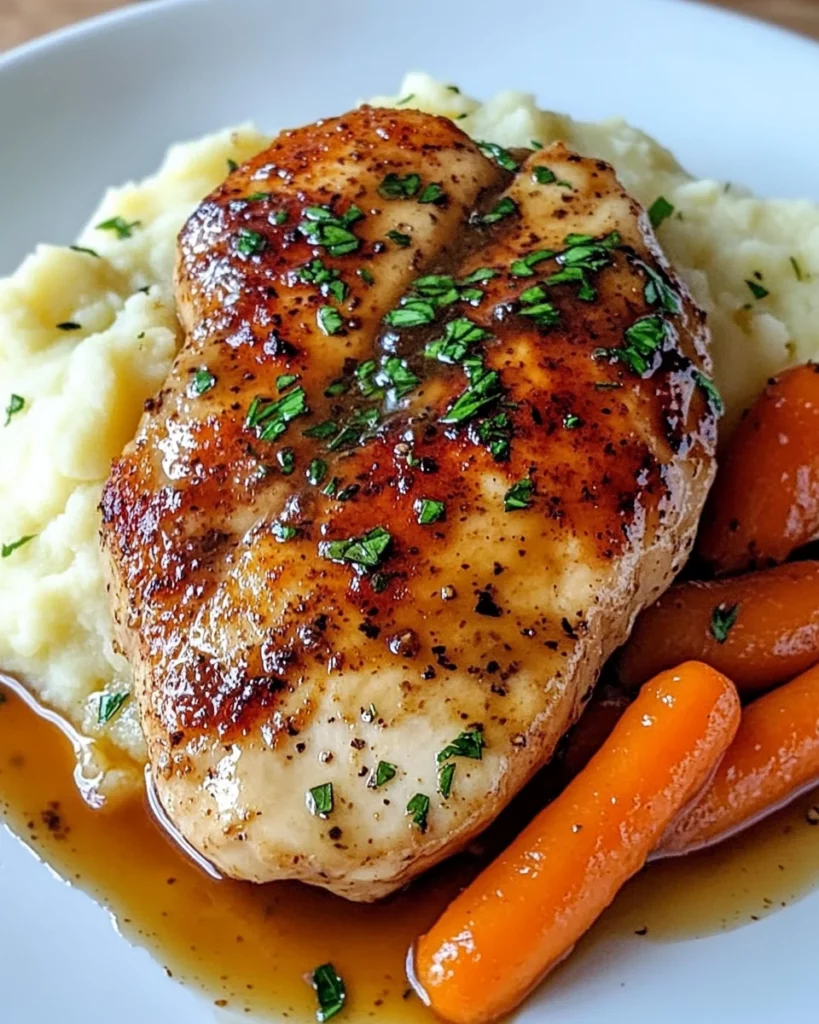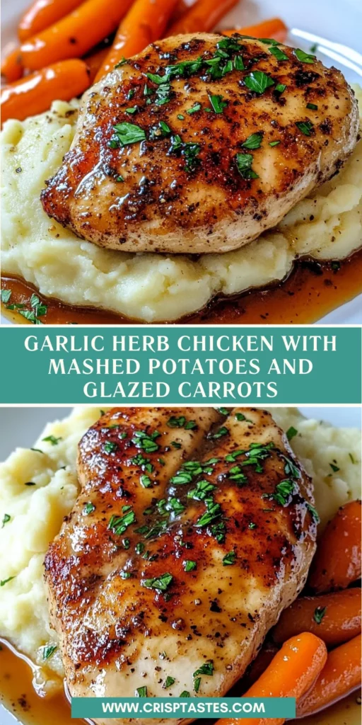 Why You’ll Love This GARLIC HERB CHICKEN WITH MASHED POTATOES AND GLAZED CARROTS