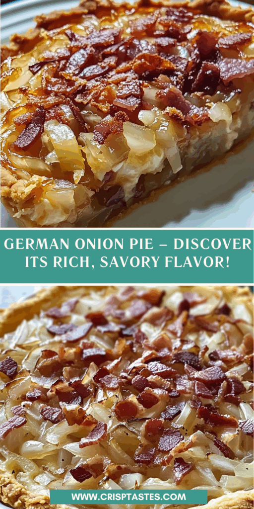 In the end, German Onion Pie isn’t just a dish; it’s a heartwarming experience that fosters connections around the kitchen table. Each savory bite is a reminder of the comfort and joy that home-cooked meals bring into our lives. Whether it’s a cozy brunch with family or a weeknight dinner shared with friends, this pie has a unique way of creating lasting memories. I encourage you to try making this delightful recipe yourself! Embrace your culinary adventures and let the aroma of German Onion Pie fill your home with warmth and love.