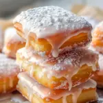 There’s something magical about biting into a warm, golden beignet square. That slight crunch when your teeth break through the delicate vanilla glaze… followed by a cloud-soft, pillowy center that practically melts in your mouth. It’s the kind of treat that feels nostalgic, cozy, and just a little indulgent — like a slow Sunday morning wrapped in sugar and warmth.