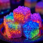 Allow your treats to cool for about 1–2 hours at room temperature. Once they’re set, cut them into squares or pop them out of the molds. Now comes the best part: turn the lights off and enjoy the magical glow under blacklight! Watch as your treats come alive in the dark, much to everyone’s delight!