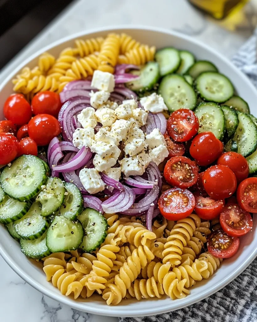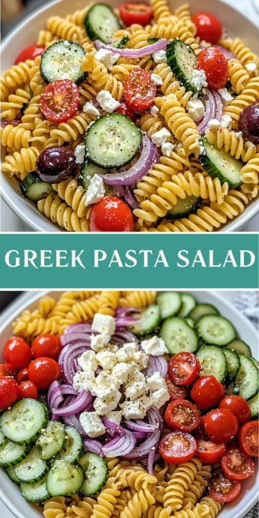 A refreshing and vibrant Greek Pasta Salad perfect for summer gatherings.