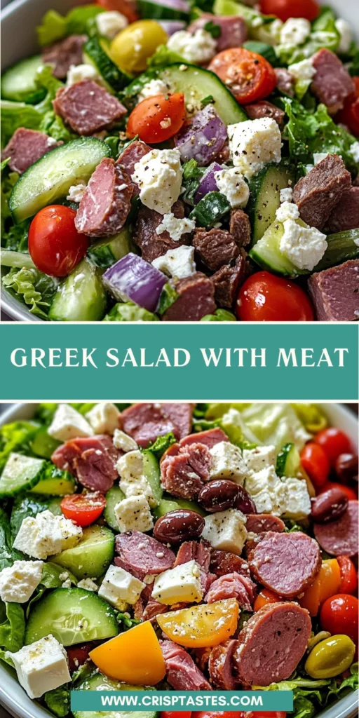 This Greek Salad with Meat is a game-changer for busy days. It’s quick to prepare—ready in just 15 minutes! The crunchy veggies, savory meats, and salty feta come together into a symphony of flavors. Plus, there’s something satisfying about a dish that feels indulgent but is still wholesome and fresh. It’s like giving your family a gourmet experience without the fuss. You’re going to love it!