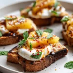 A vibrant flavor bomb in one bite: charred sourdough, creamy burrata, golden caramelized pineapple, and a spicy-sweet honey drizzle. Crisp, creamy, fruity, and fiery—this is summer crostini reimagined.
