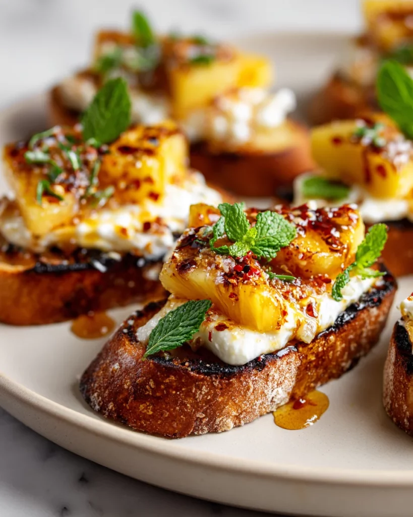 You can grill the crostini slices a few hours ahead. Once cooled, store them uncovered at room temperature to maintain crispness. Avoid stacking to prevent steaming. - Caramelize Pineapple Early