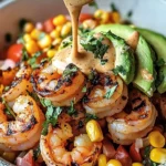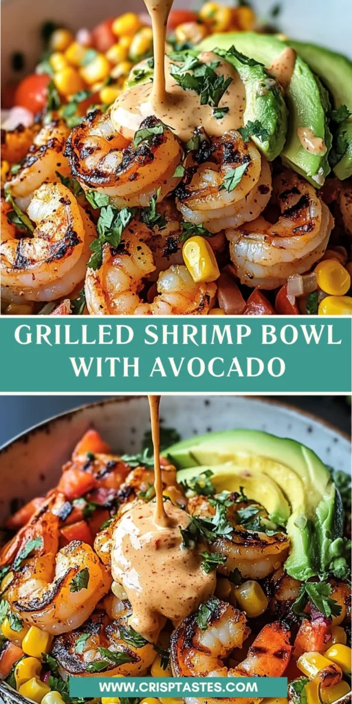 Creating a Grilled Shrimp Bowl with Avocado, Corn Salsa & Creamy Garlic Sauce brings such joy to my kitchen. The vibrant colors and fresh flavors are a feast for both the eyes and the palate. It’s a delightful dish that can transform an ordinary weeknight into a special occasion without straying from healthfulness. Each bite is a reminder that simple, wholesome ingredients can create extraordinary meals. I hope you enjoy this culinary adventure as much as I do! Trust me, once you dive into this bowl, you’ll find it hard to resist making it again and again.