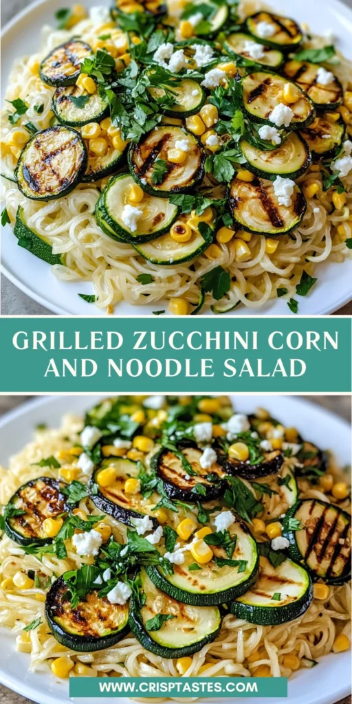 Creating this grilled zucchini corn and noodle salad is more than just cooking; it’s about bringing joy to your table. The vibrant colors and fresh flavors remind me of sunny days spent outdoors with family and friends. Each bite is a celebration of summer, making it a perfect dish for gatherings or a simple weeknight dinner. Plus, it’s so easy to prepare that even the busiest of moms can whip it up in no time. I hope this recipe becomes a cherished part of your culinary adventures, just as it has in mine!