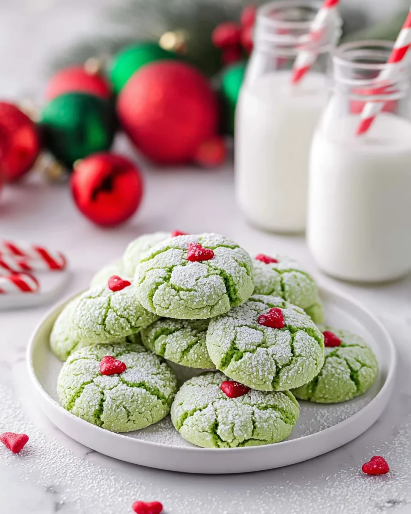 What’s the best way to decorate my Grinch Cookies? While heart-shaped sprinkles are adorable, you can also use edible glitter or drizzles of white chocolate for a lovely finish. If you’re feeling creative, pipe some frosting for extra flair!
