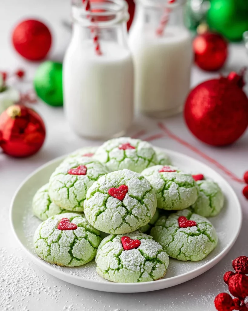 What’s the best way to decorate my Grinch Cookies? While heart-shaped sprinkles are adorable, you can also use edible glitter or drizzles of white chocolate for a lovely finish. If you’re feeling creative, pipe some frosting for extra flair!
