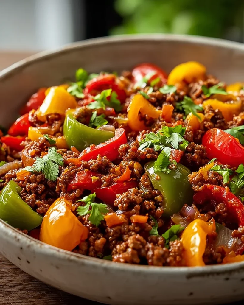 Your Ground Turkey and Peppers Stir-Fry is almost ready! If you’d like, add a sprinkle of fresh cilantro for an extra pop of flavor. Serve it warm on a plate, and watch your loved ones dig in. Enjoy the smiles that come from serving this delicious meal!